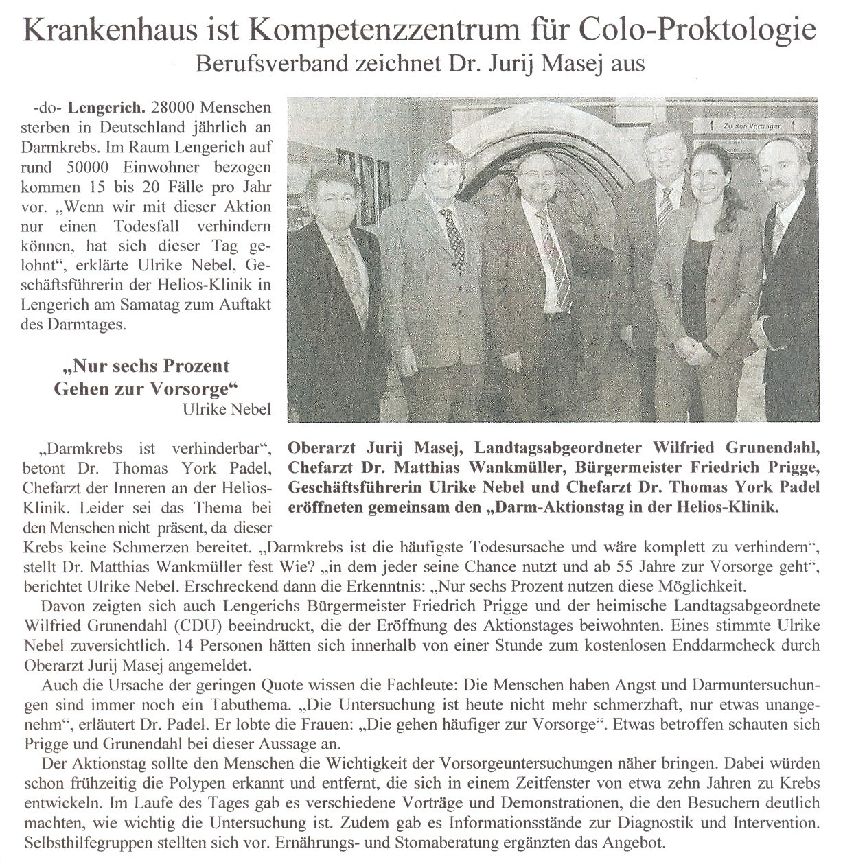 Wer möchte, ist zu einem kostenlosen Enddarmcheck durch Oberarzt Jurij Masej eingeladen. Dazu sollte im Vorfeld ein Termin reserviert werden unter Telefon 0 54 81/8 01-6 61.