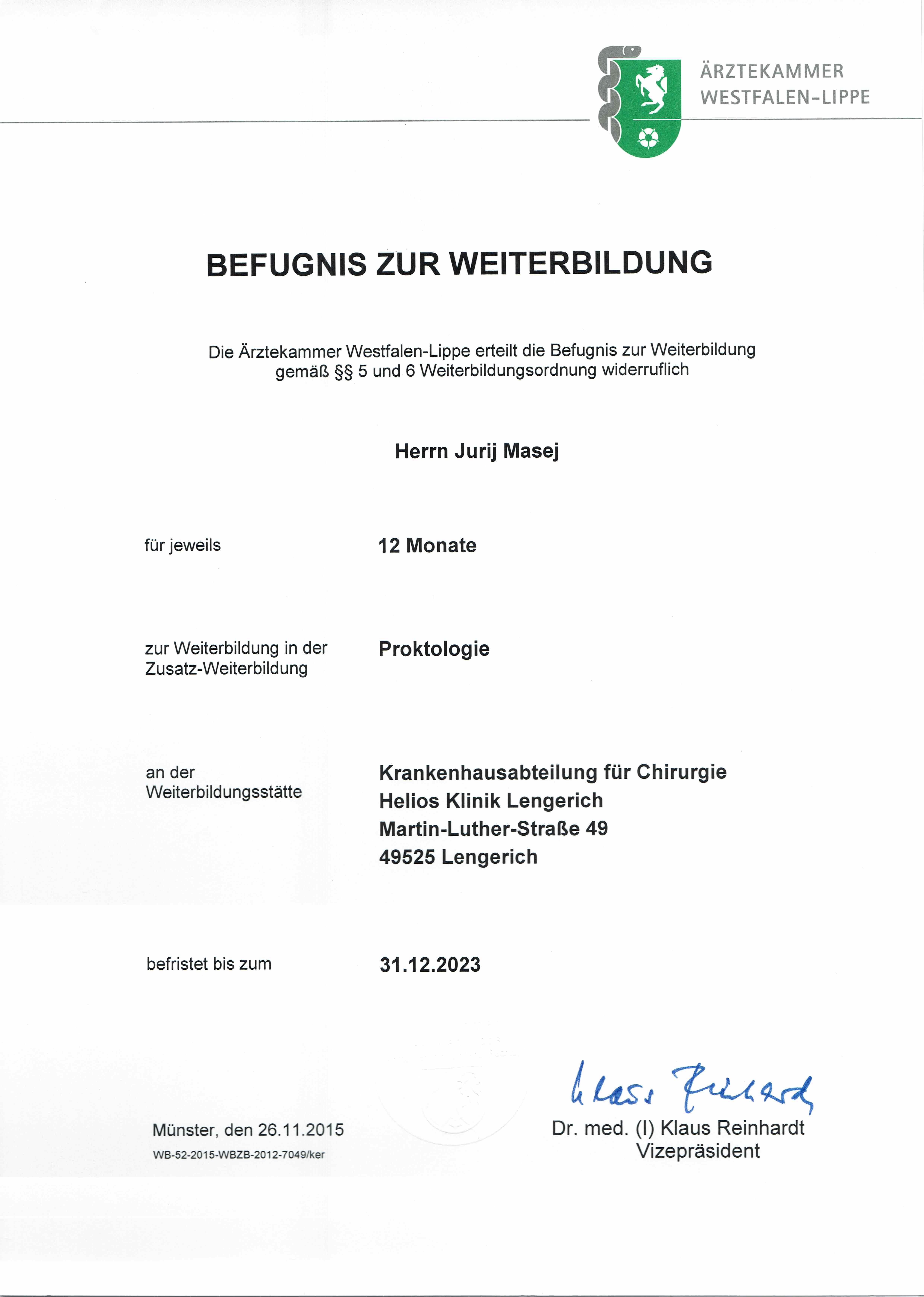 Weiterbildungsermächtigung